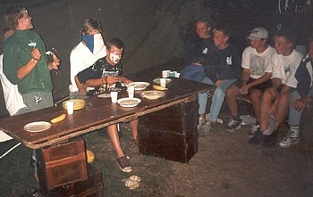 Arno Dreef probeerde een stier te vangen (onze eigen cowboy). Het werd zelfs zo heftig dat de stier het water in rende, met Arno op z'n rug. Gijsbert liet per ongeluk de strontzak scheuren. Gevolg: over het hele kampterrein een helse stank en diverse menselijke uitwerpselen.