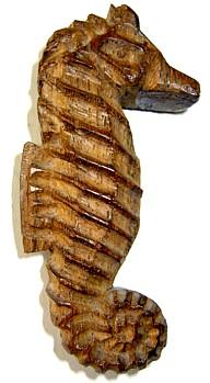 een houten zeepaardje (het symbool van de stam), die op de zeeverkennerstrui