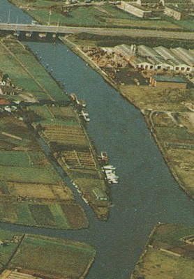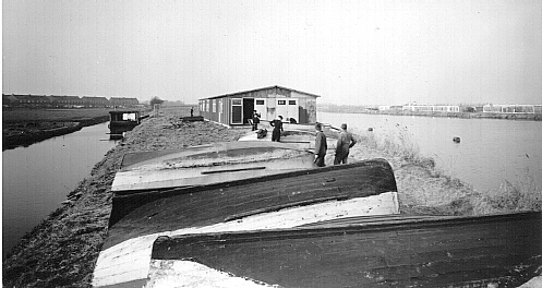 Troephuis begin 1964, gezien vanaf de punt. Overal open land, zoals een zeiler dat graag ziet. De woonboot lag er nog tot jaren zeventig. |