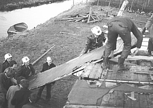 In 1974/75 kregen de zeeverkenners van de gemeente een oude keet van betonplaten langs de Schelpendam, mits ze die dezelfde zaterdag (gratis) weghaalden. Dit gebeurde en leverde behalve een afschuwelijke spierpijn, een stapel betonnen palen, platen en stoeptegels, die vervolgens jaren nutteloos op het terrein lagen. Alleen de palen bleken nuttig voor het vervangen van de afrastering. |