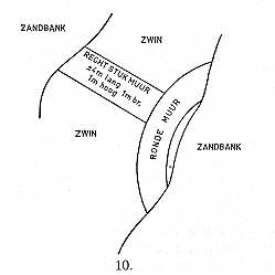 ver in zee. De Brittenburg zou dan voor de huidige uitwatering liggen.