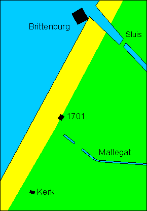 het Mallegat, de oude uitwatering van 1572, werd de afstand tot de