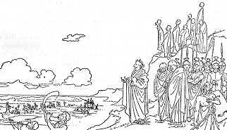 Caligula, die zijn soldaten op het strand opstelde met het geschut. Daarna