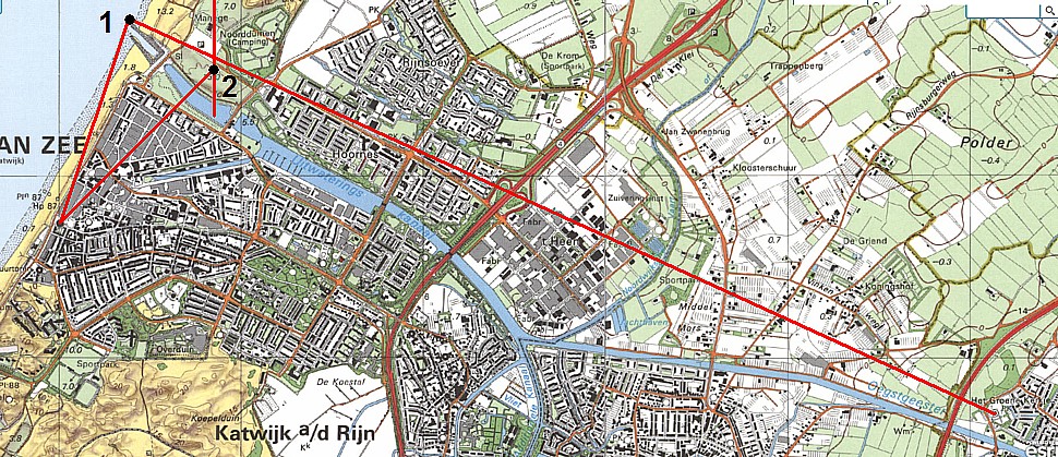 De peiling tussen de kerk van Oegstgeest en Katwijk aan Zee klopt (83,7